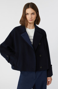 Maritime style abounds in a double-faced jacket made from virgin-wool broadcloth and framed by voluminous raglan sleeves. Hidden-button placket Stand collar Side welt pockets Adjustable martingale cuffs Cotton lining 100% virgin wool Dry clean Imported
