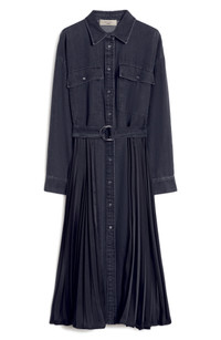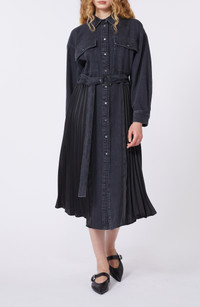 Make denim and dress day work together with an inky option gussied up with sweet pleats frothed at the sides. Front button closure Spread collar Long sleeves with one-button cuffs Chest button-flap pockets 100% cotton with 100% polyester contrast Dry clean Imported