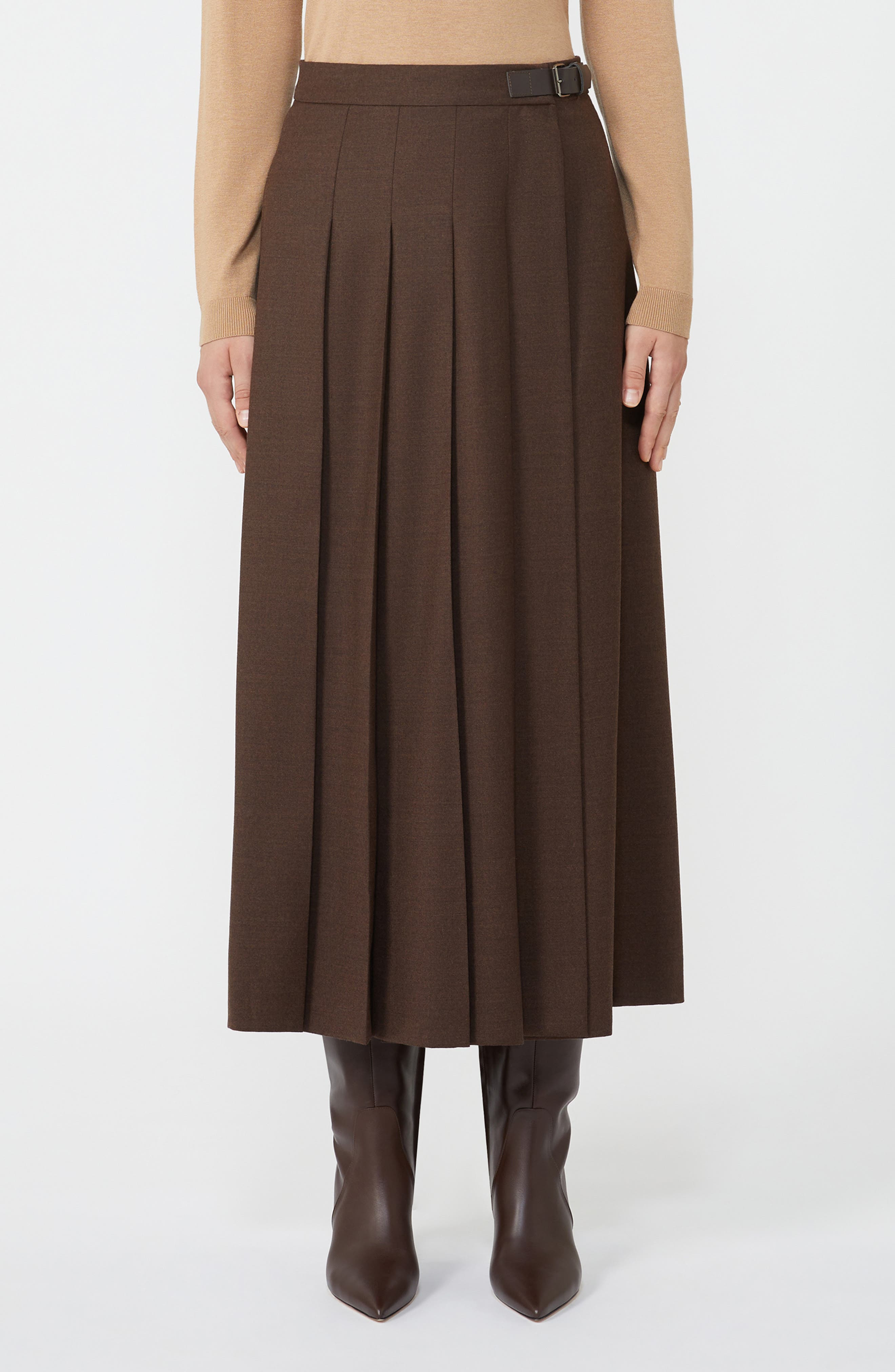 Weekend Max Mara Fastoso Pleated Stretch Virgin Wool Skirt in Chocolate at Nordstrom