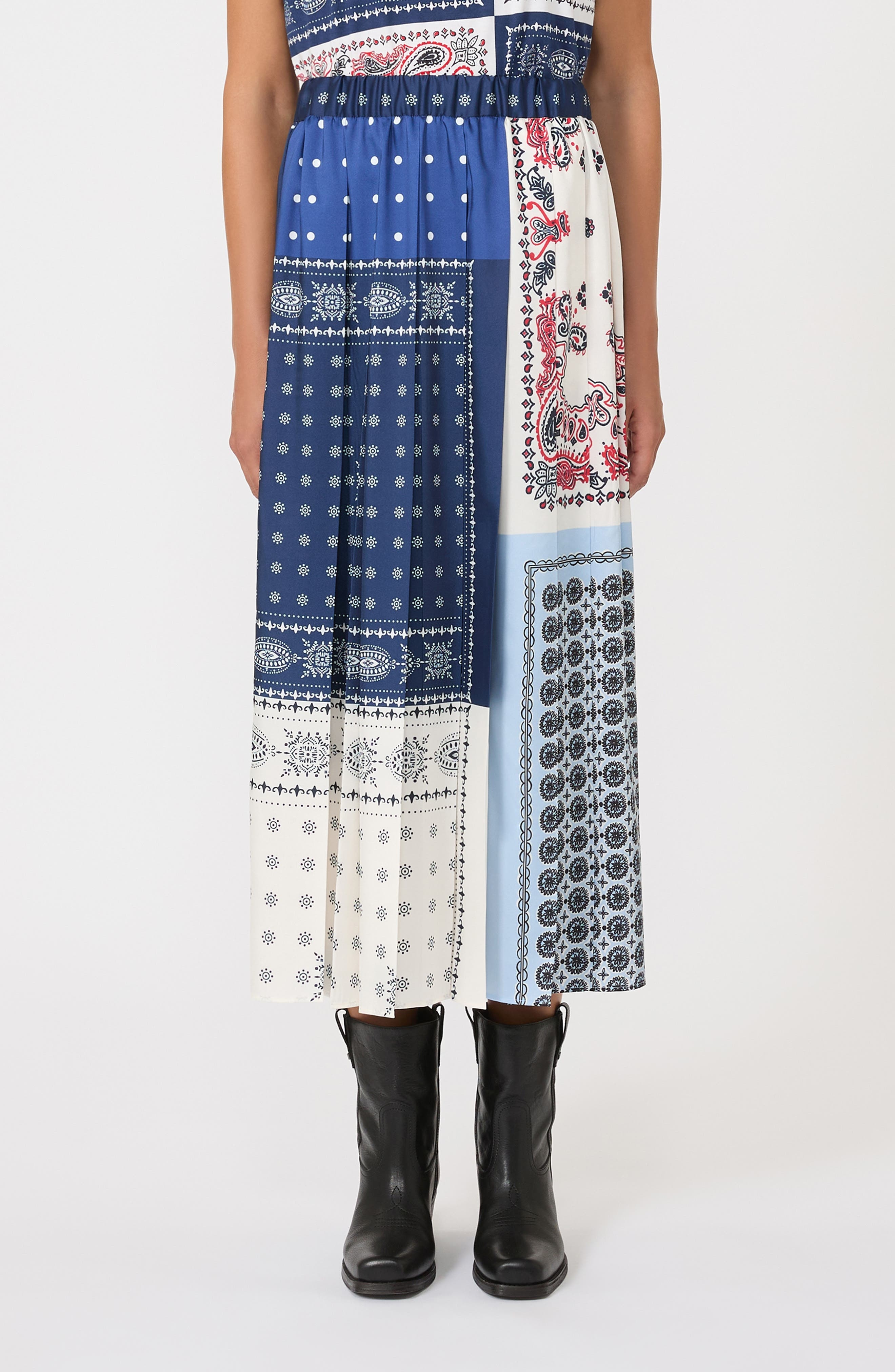 Bring the boho-chic aesthetic to your weekend look in this flowy maxi skirt boasting a fashionable patchwork pattern. Elastic waist 100% polyester Dry clean Imported