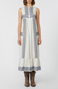 Bandana prints add homespun charm to an all-cotton dress cut in a summery, sleeveless silhouette. Hidden back-zip closure Split neck Sleeveless Cotton lining 100% cotton Dry clean Imported