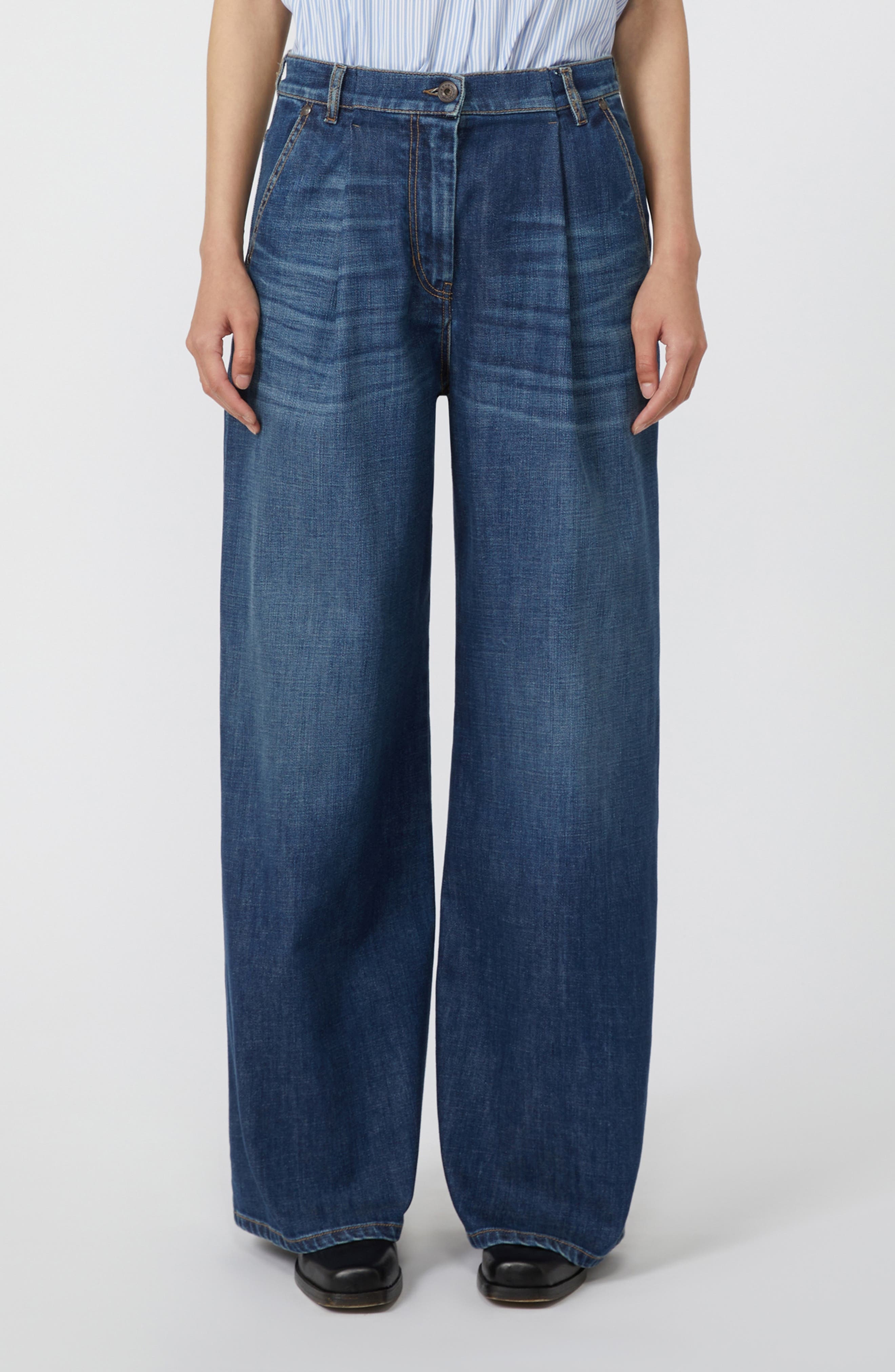 Weekend Max Mara Ortles Pleat Front Wide Leg Jeans in Navy at Nordstrom