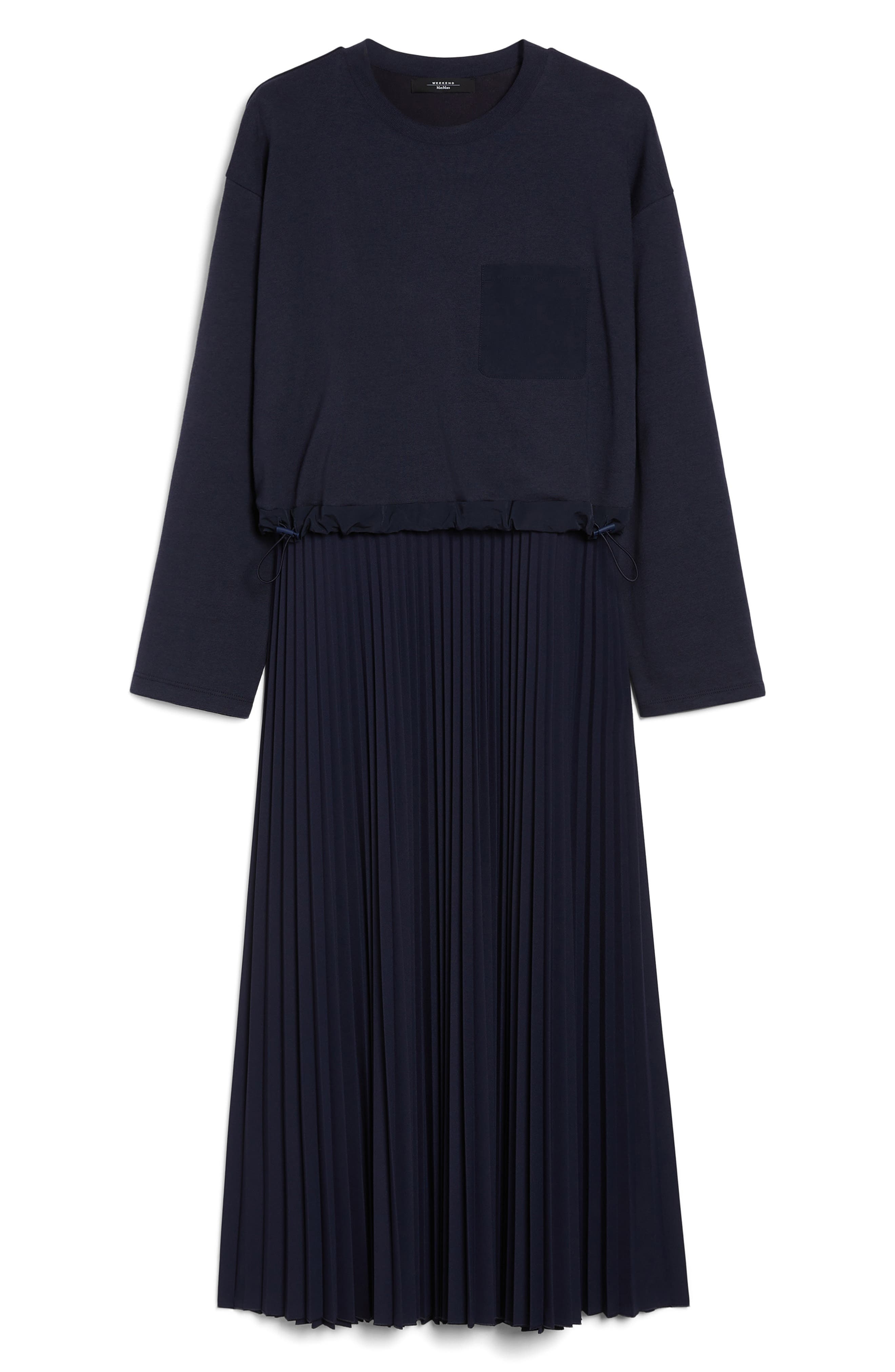 Weekend Max Mara Scatola Long Sleeve Mixed Media Dress in Navy at Nordstrom