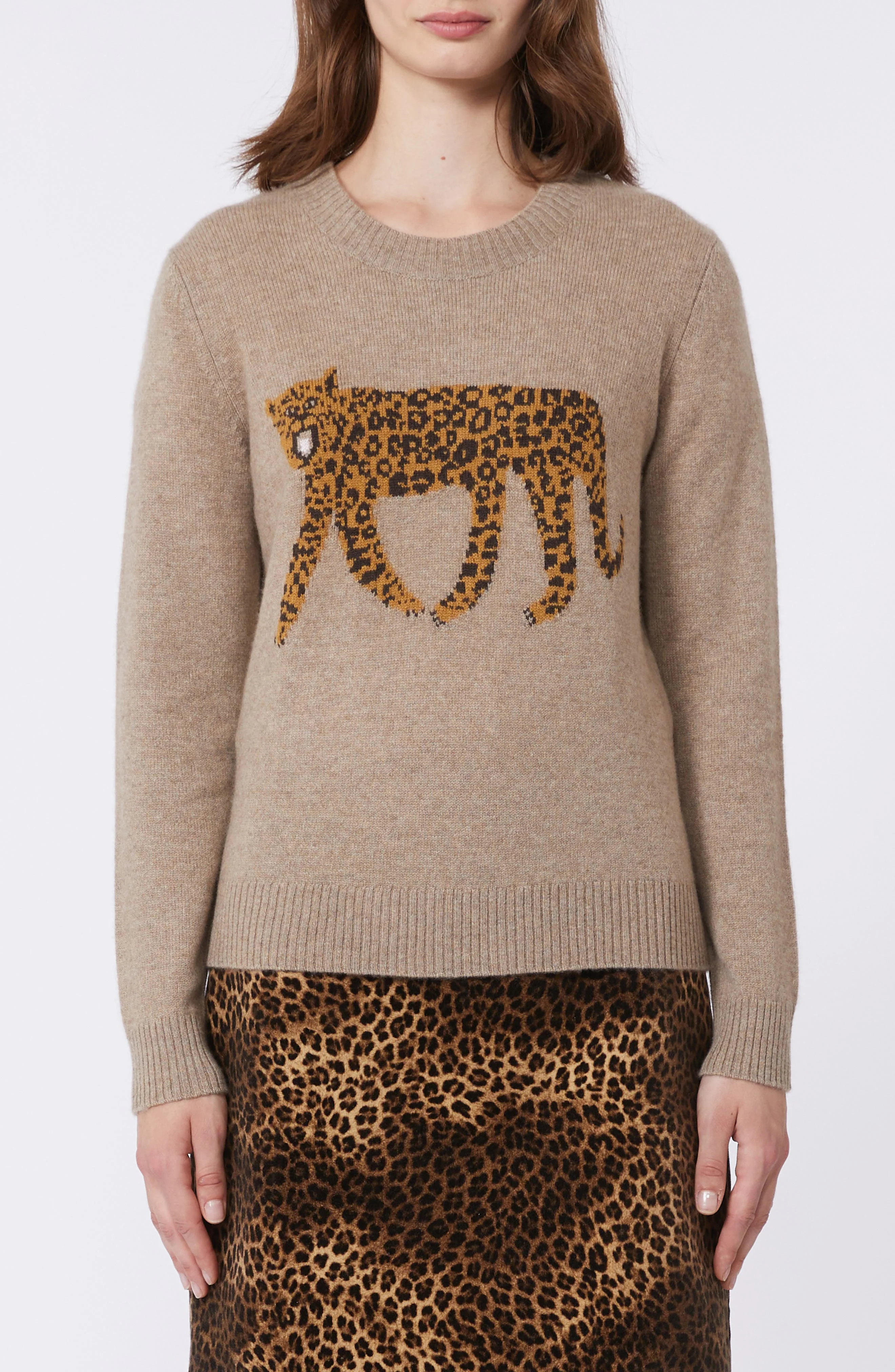 Stalk style in the layer-ready comfort of this jacquard-knit sweater that pounces on your weekend knit from supersoft cotton yarns. Crewneck Long sleeves with ribbed cuffs 100% cotton Dry clean Imported