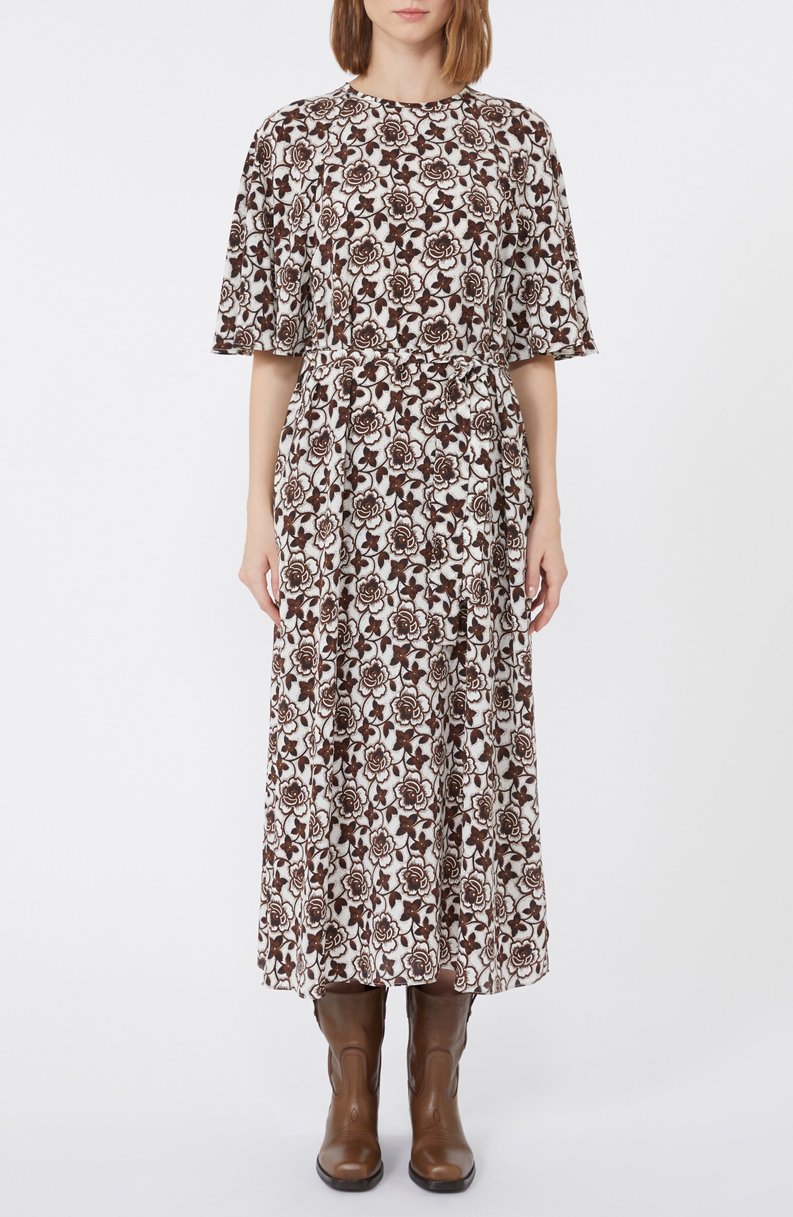 Weekend Max Mara Varese Floral Print Silk Dress in Brown at Nordstrom