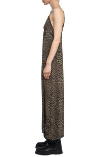 Lacy trim and an allover leopard print bring unmistakable retro style to this flirty slipdress. Slips on over head V-neck Adjustable straps Side slit Unlined 100% viscose Machine wash, dry flat Imported
