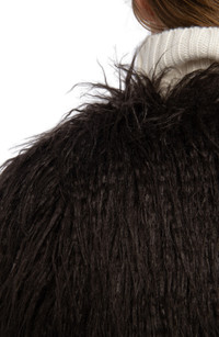 Look like the headliner in a rockstar coat made from fabulous, feather-like faux fur. Open front Collarless 77% acrylic, 23% polyester faux fur Dry clean Imported
