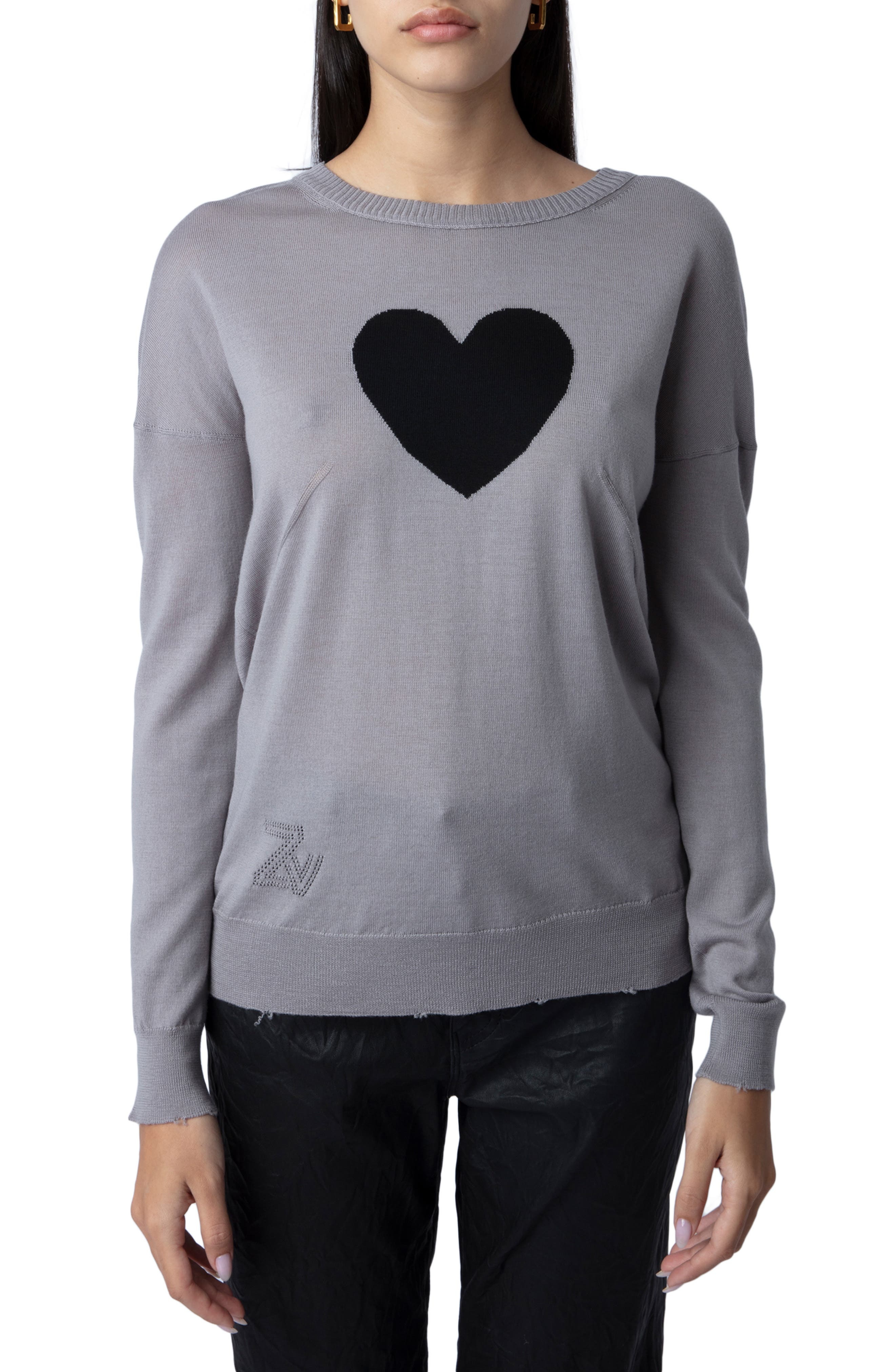 Zadig & Voltaire Gaby Intarsia Heart Wool Crewneck Sweater in Gris Chine at Nordstrom