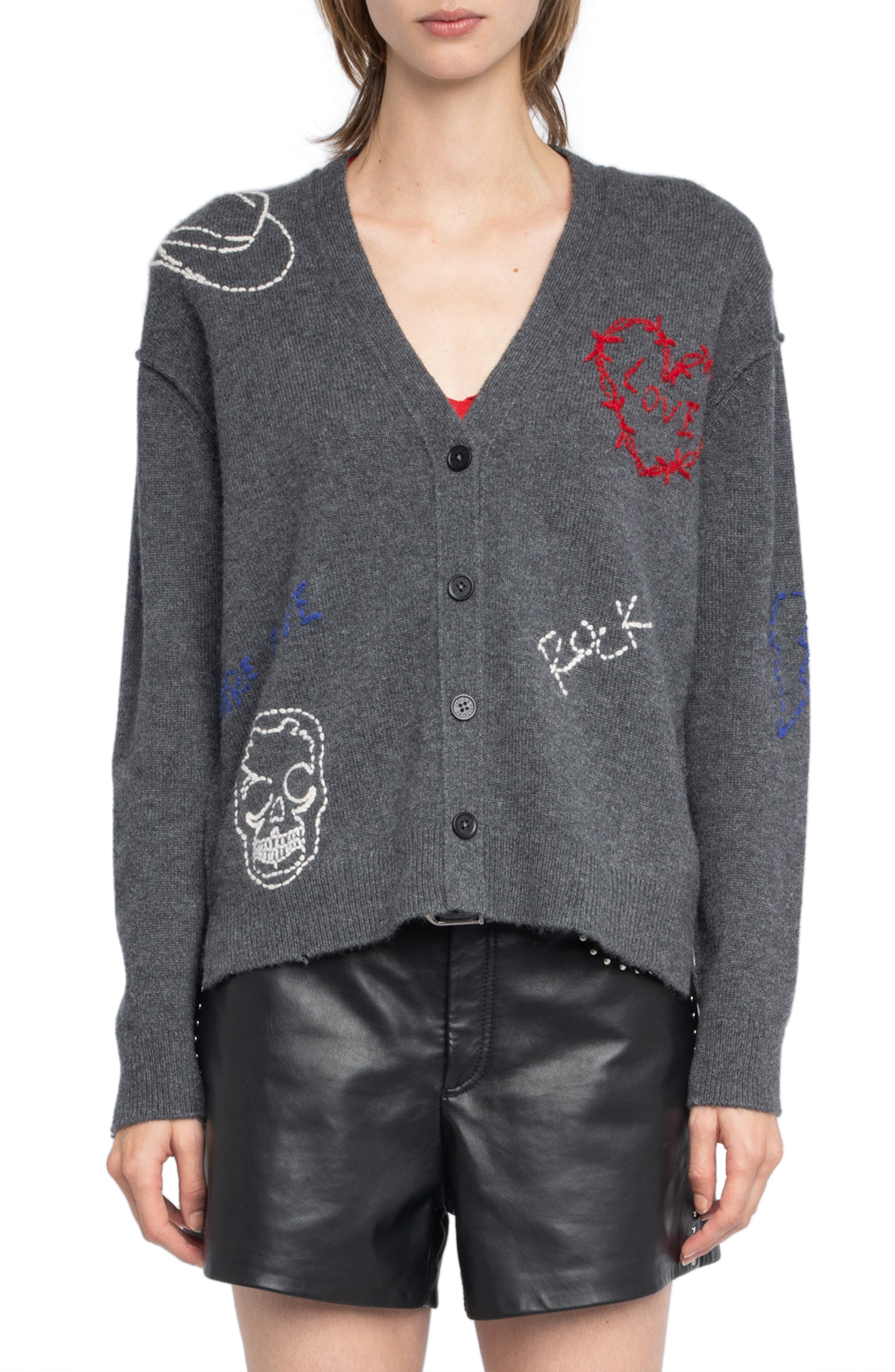 Zadig & Voltaire Mirkaz West Graph Embroidered Cashmere Cardigan in Anthracite at Nordstrom