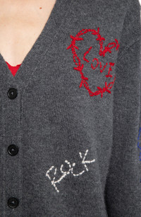 Bold chain-stitch embroidery lends grungy allure to a cardigan knit from sumptuous cashmere in a relaxed silhouette with roomy dropped shoulders. Front button closure Deep V-neck Long sleeves Dropped shoulders 100% cashmere Hand wash, dry flat Imported