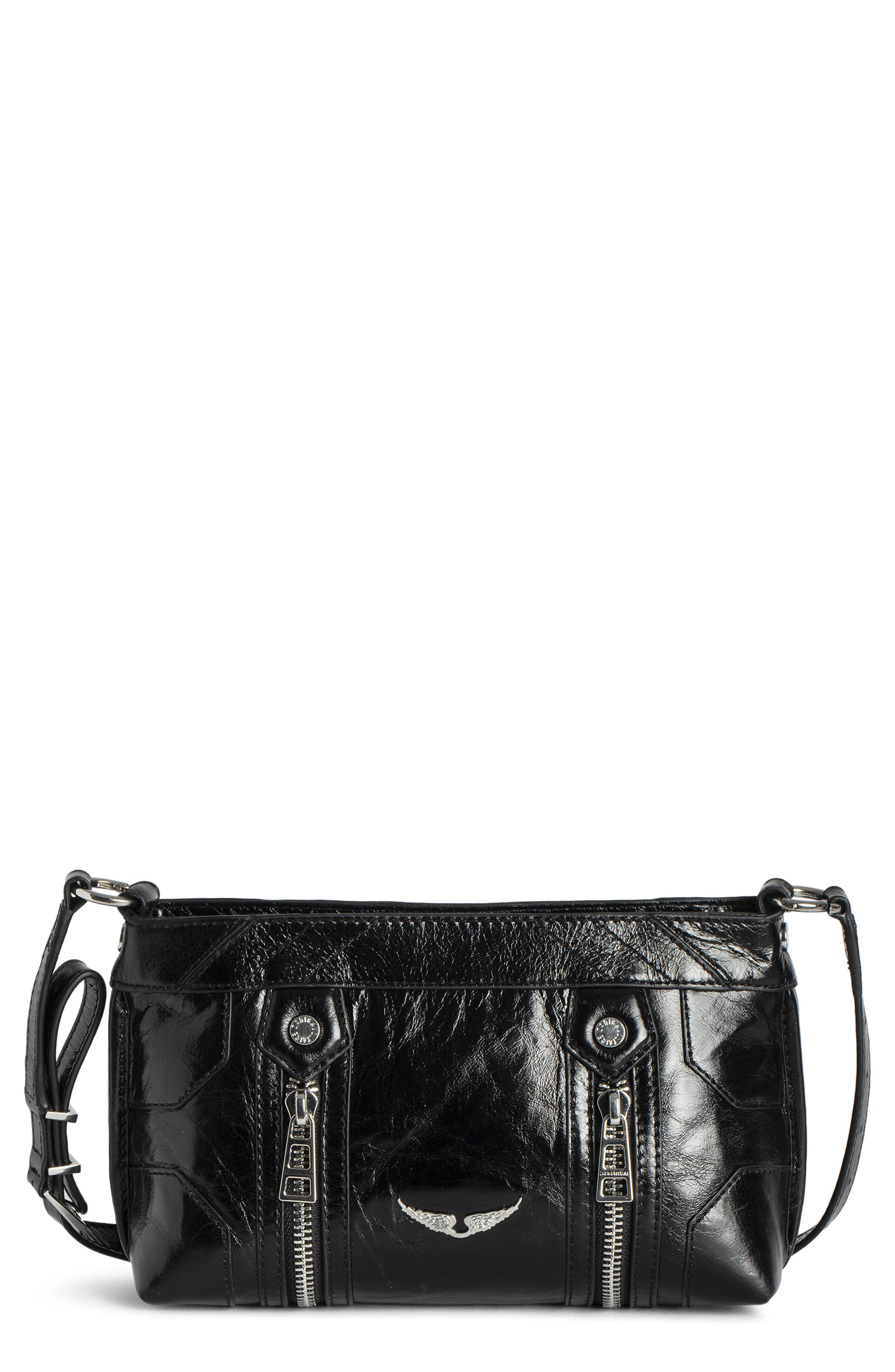 Zadig & Voltaire Sunny Mood Vintage Patent Crossbody Bag in Noir at Nordstrom