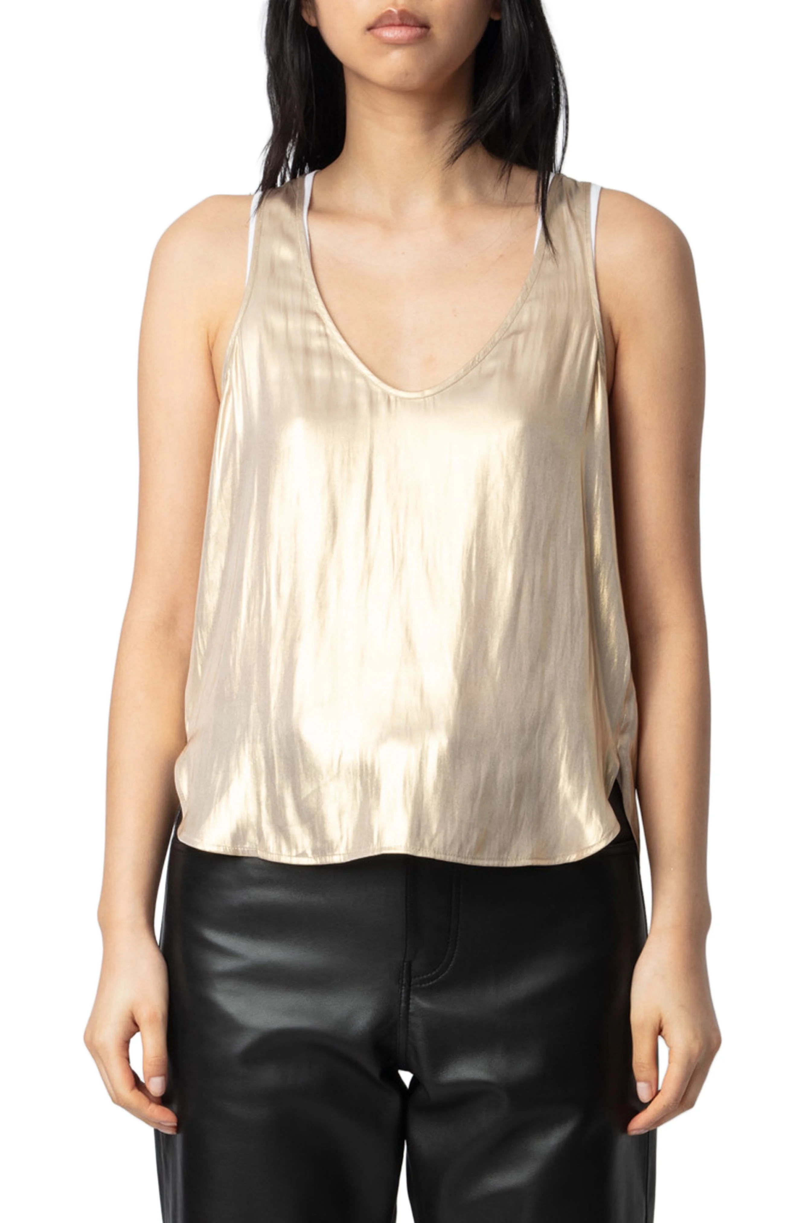 Zadig & Voltaire Tarys Satin Tank in Gold at Nordstrom