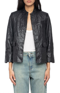 Zadig & Voltaire Veryn Cuir Crinkled Leather Jacket in Black at Nordstrom