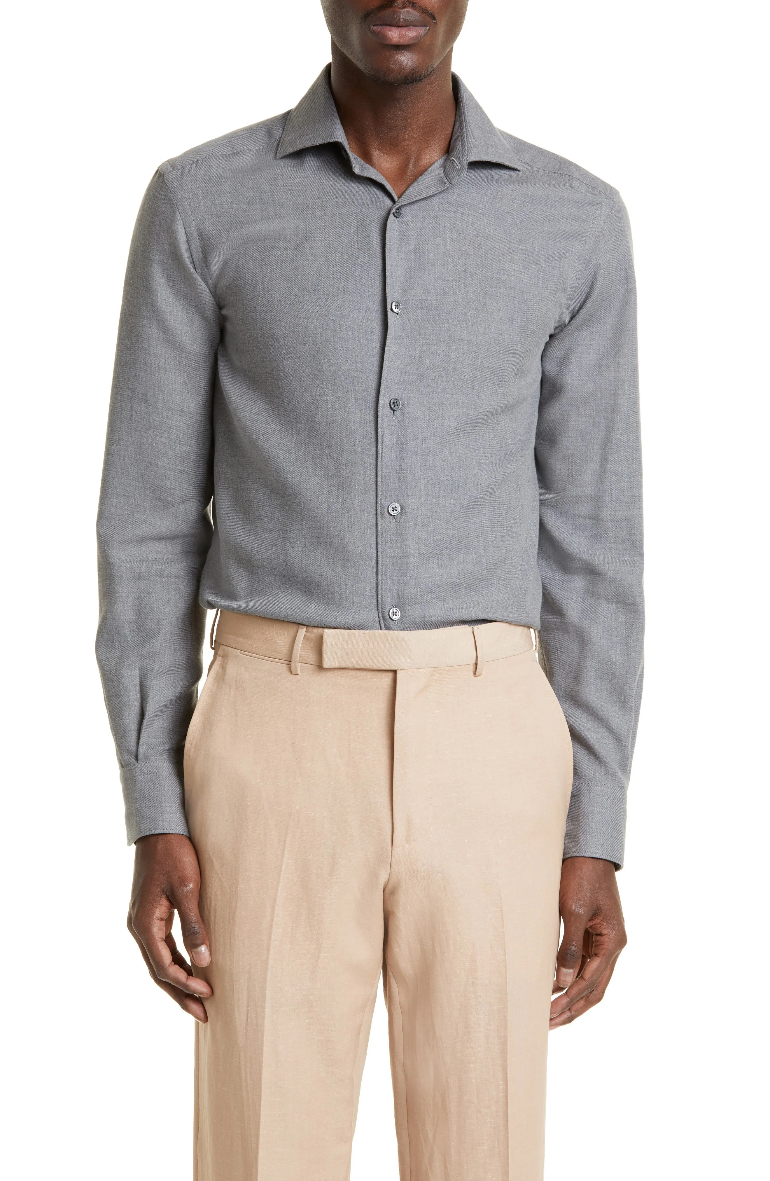 A staple for cooler seasons, this button-up shirt is cut from signature flannel woven from a blend of cotton and cashmere that feels lightweight, yet warm. Front button closure Point collar Long sleeves with button cuffs Curved hem 85% cotton, 15% cashmere Dry clean Made in Turkey Men's Designer Clothing