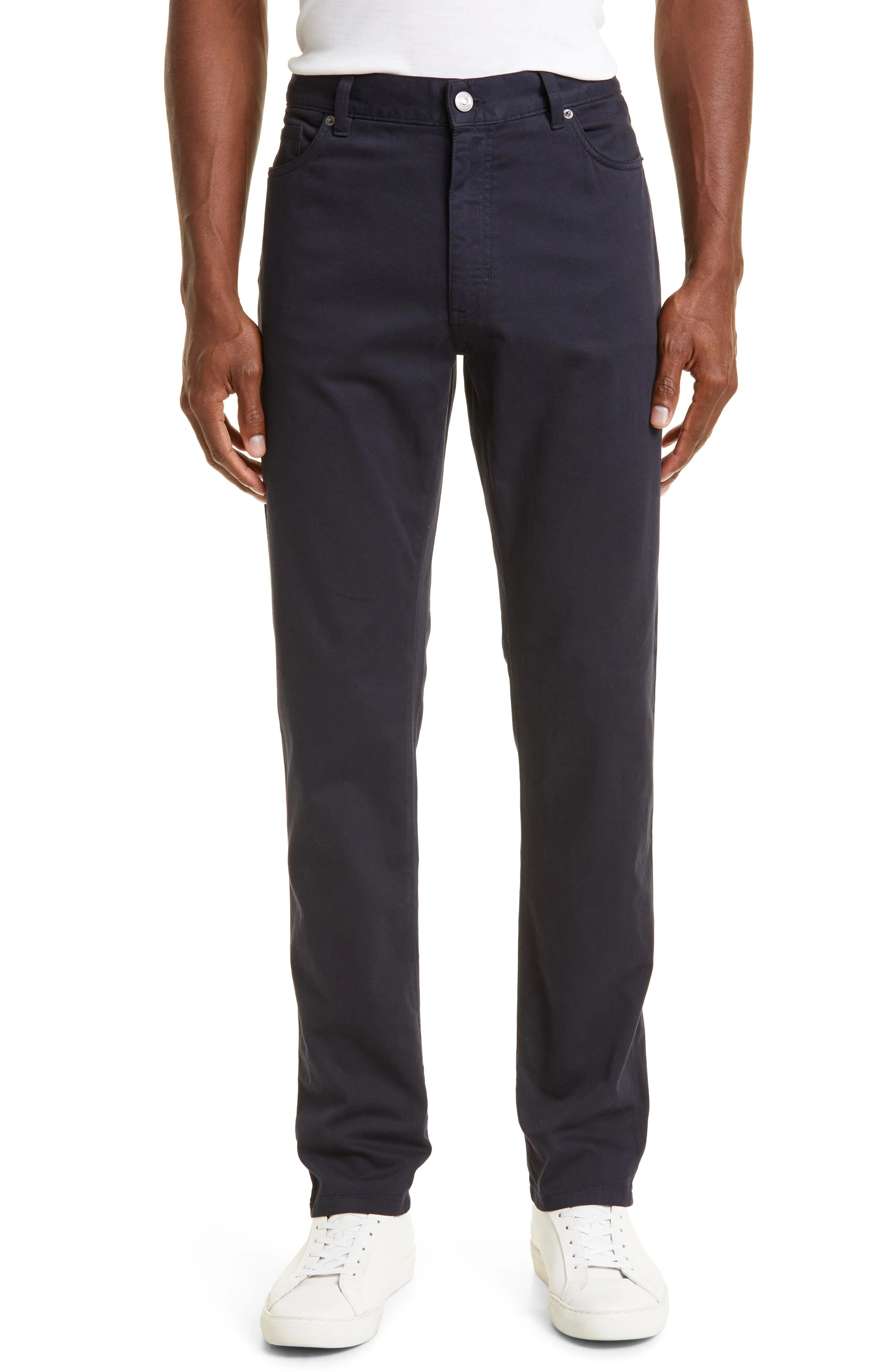 A casually charming five-pocket cut defines smart and stylish pants shaped from stretch-kissed cotton for an ideal fit. Zip fly with button closure Five-pocket style 98% cotton, 2% elastane Machine wash, line dry Made in Italy Men's Designer Clothing
