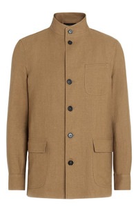 ZEGNA takes a clean-lined, minimalist approach to utility style on this handsome chore jacket crafted from linen-and-wool twill with ample pockets. Front button closure Stand collar Long sleeves Chest patch pocket; front flap pockets 60% linen, 40% wool Dry clean Made in Italy Designer Clothing