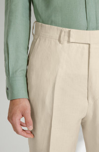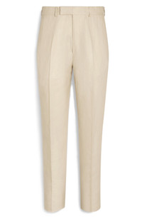 Crisp creases and a flat front lend a refined look to beige trousers fashioned from lightweight Italian linen. Zip fly with hook-and-bar tab closure Side-seam pockets; back welt pockets 100% linen Dry clean Made in Italy Designer Clothing