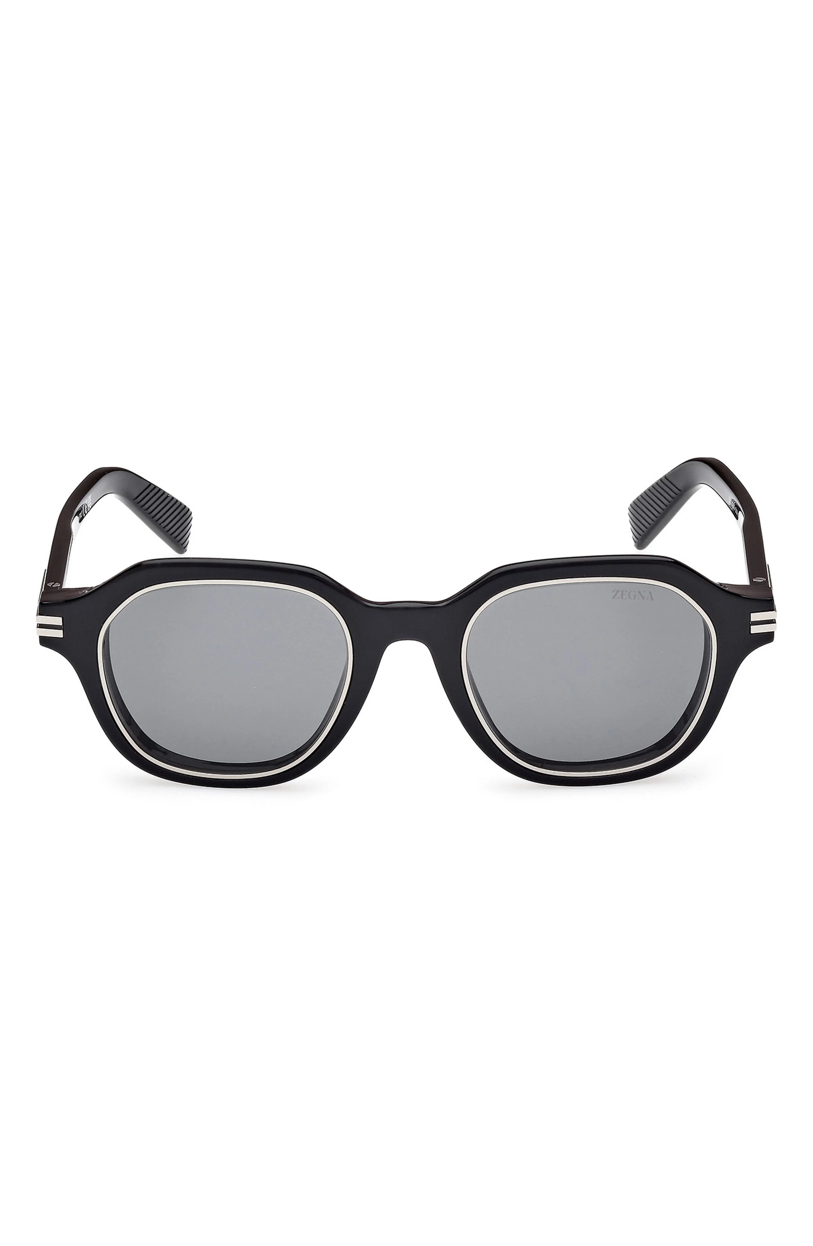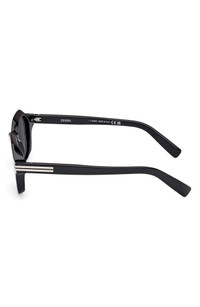 ZEGNA 49mm Geometric Polarized Sunglasses in Shiny Black /Smoke at Nordstrom