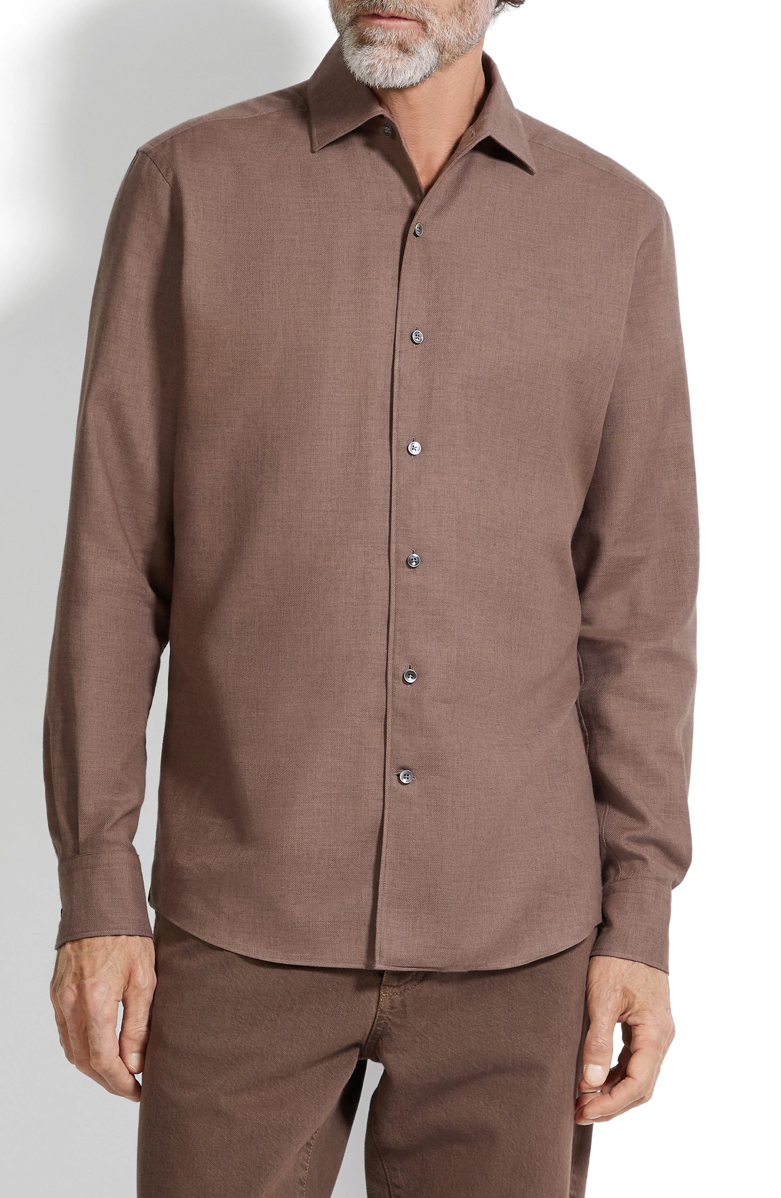 ZEGNA Cashco Cotton & Cashmere Button-Up Shirt in Brown Melange at Nordstrom