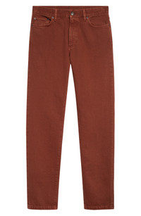 Elevate your casual look with these jeans cut in a slim, straight-leg fit from nonstretch denim in a faded brick-red wash. Zip fly with button closure Five-pocket style 100% cotton Machine wash, line dry Imported Designer Clothing