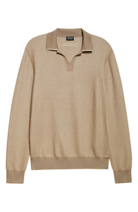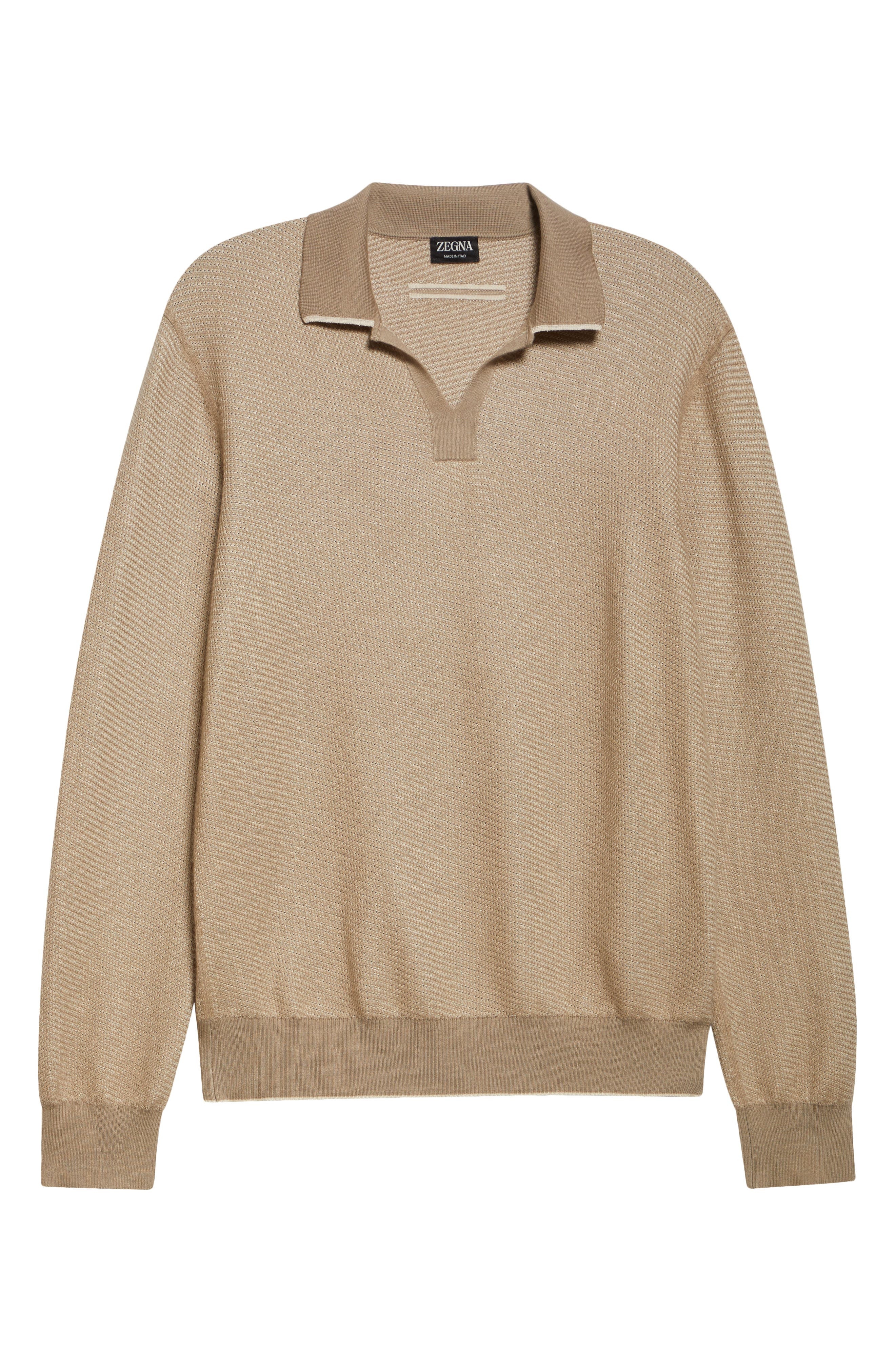 ZEGNA Long Sleeve Silk & Cashmere Polo Sweater in Med Beige Fan at Nordstrom