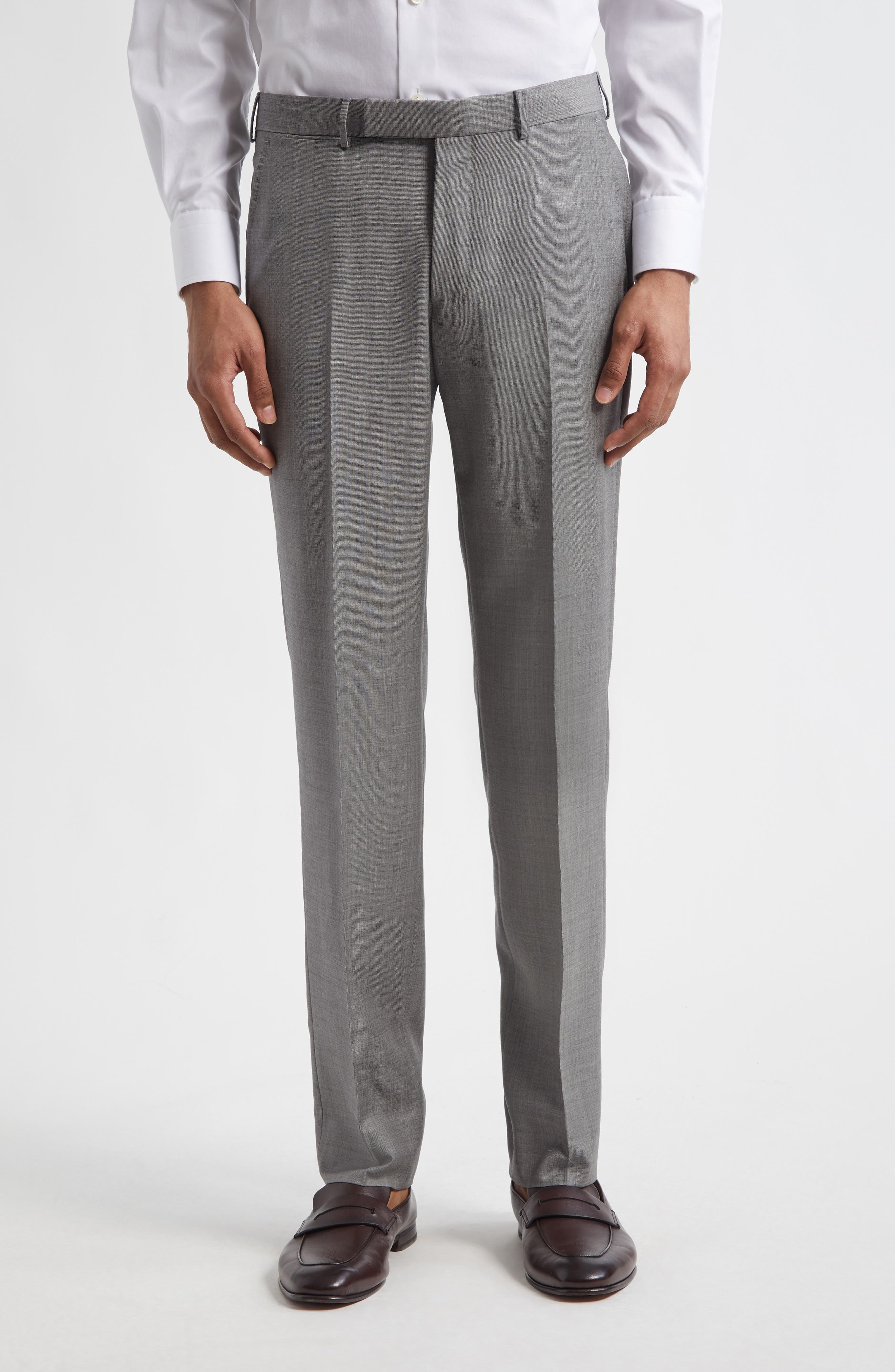ZEGNA Mélange Wool Pants in Md Gry Sld at Nordstrom