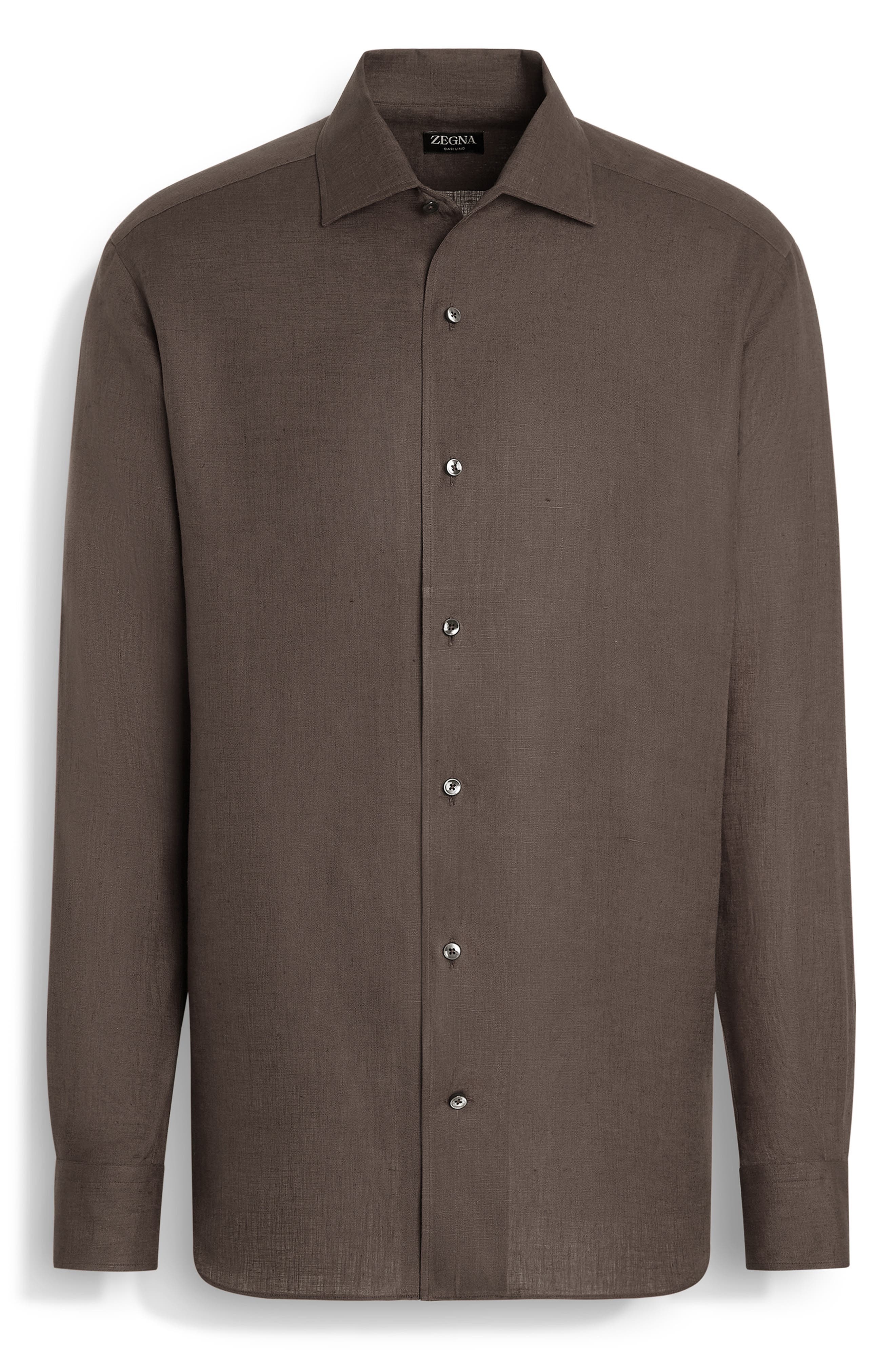 ZEGNA Oasi Linen Button-Up Shirt in Dark Solid Grey at Nordstrom