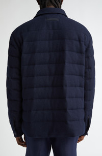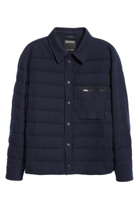 ZEGNA Oasi Quilted Water Repellent Cashmere Down Shirt Jacket in Navy at Nordstrom