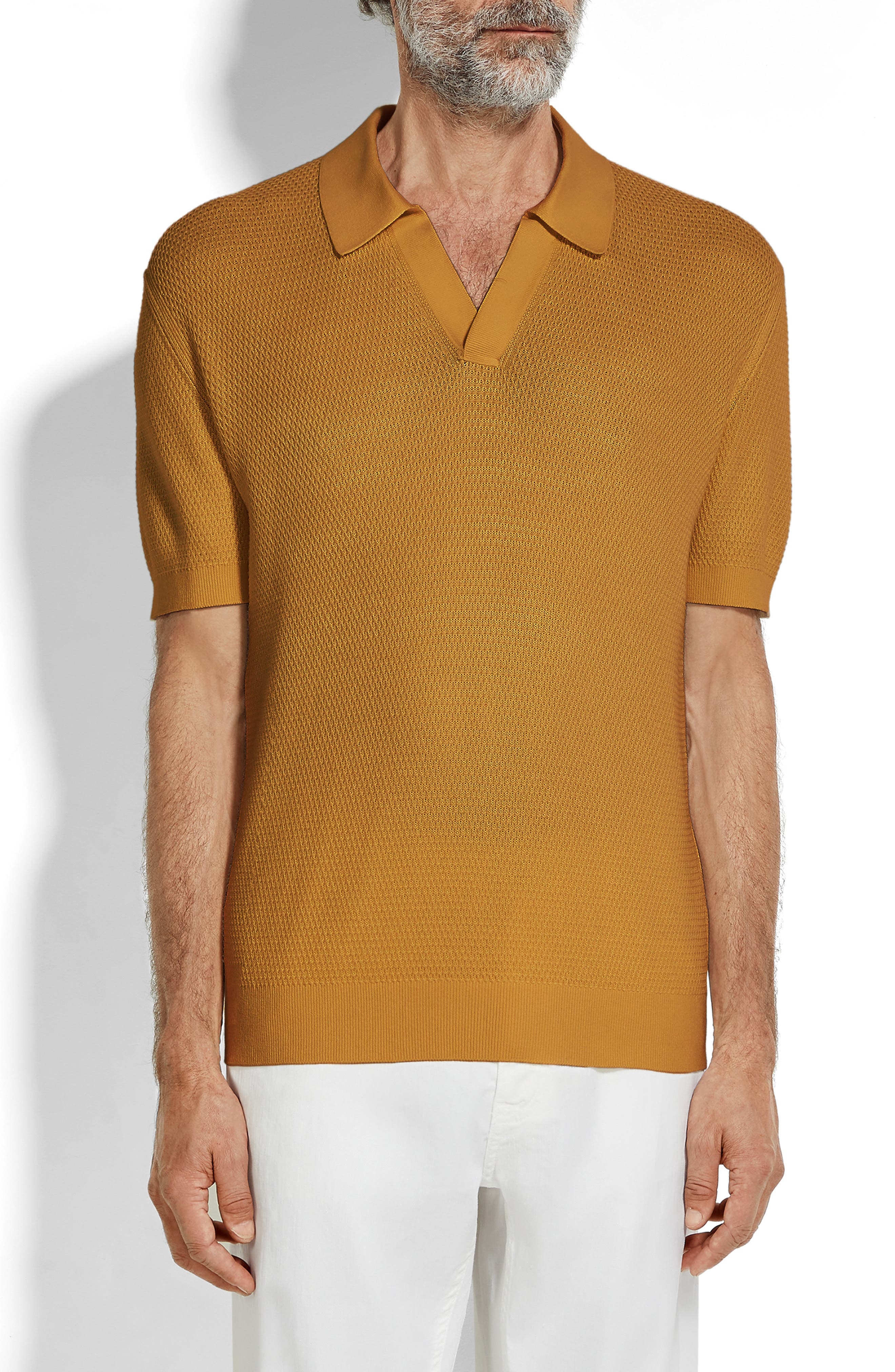 ZEGNA Premium Waffle Knit Cotton Polo Sweater in Dark Yellow Solid at Nordstrom