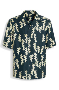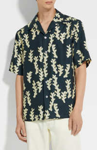 Fluid, lightweight silk lends luxurious softness to this easy-fitting button-up shirt topped with a convertible collar. Front button closure Convertible collar Short sleeves 100% silk Dry clean Made in Italy Designer Clothing
