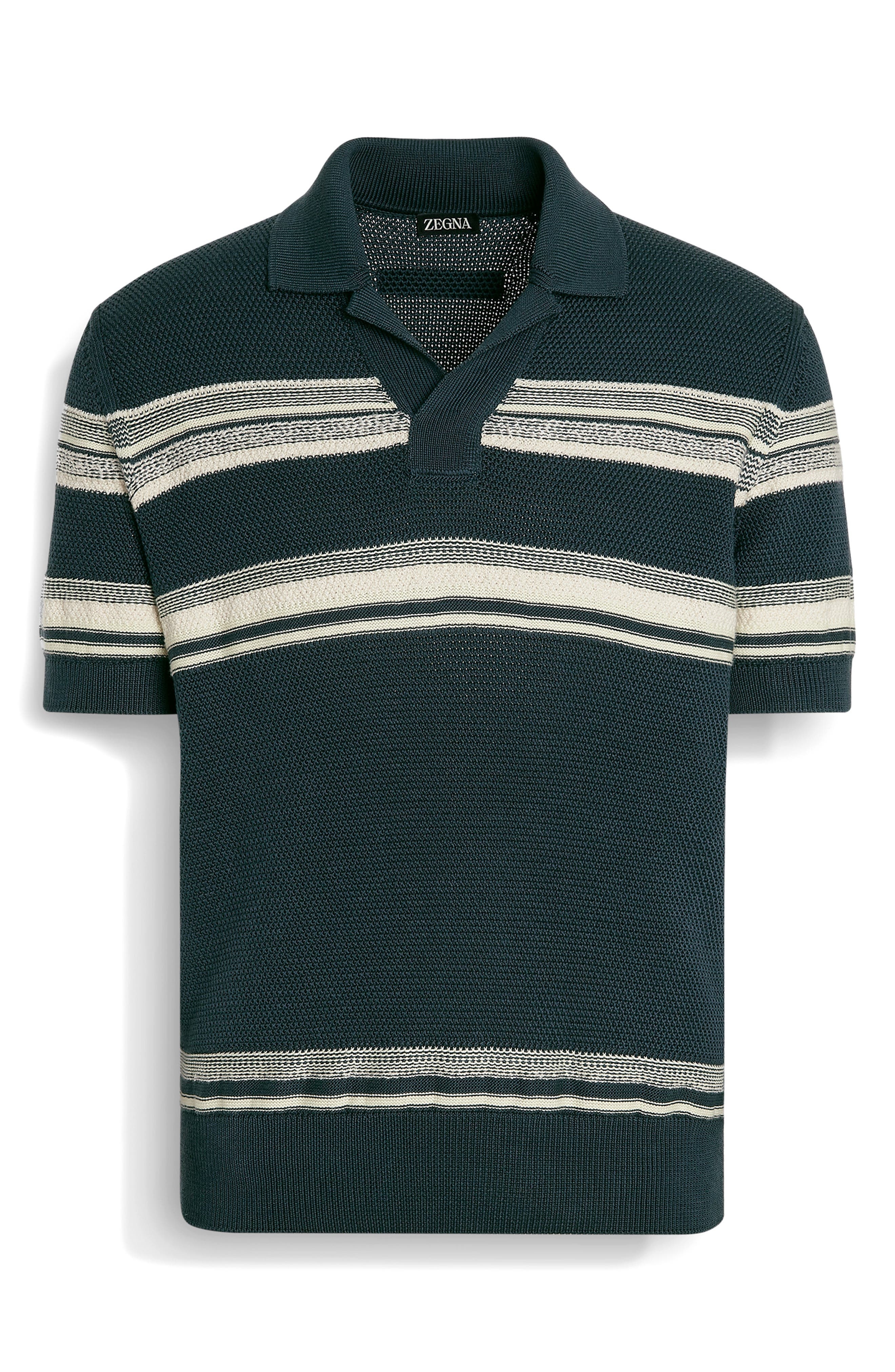 ZEGNA Stripe Cotton & Silk Polo Sweater in Dark Green Stirpe at Nordstrom
