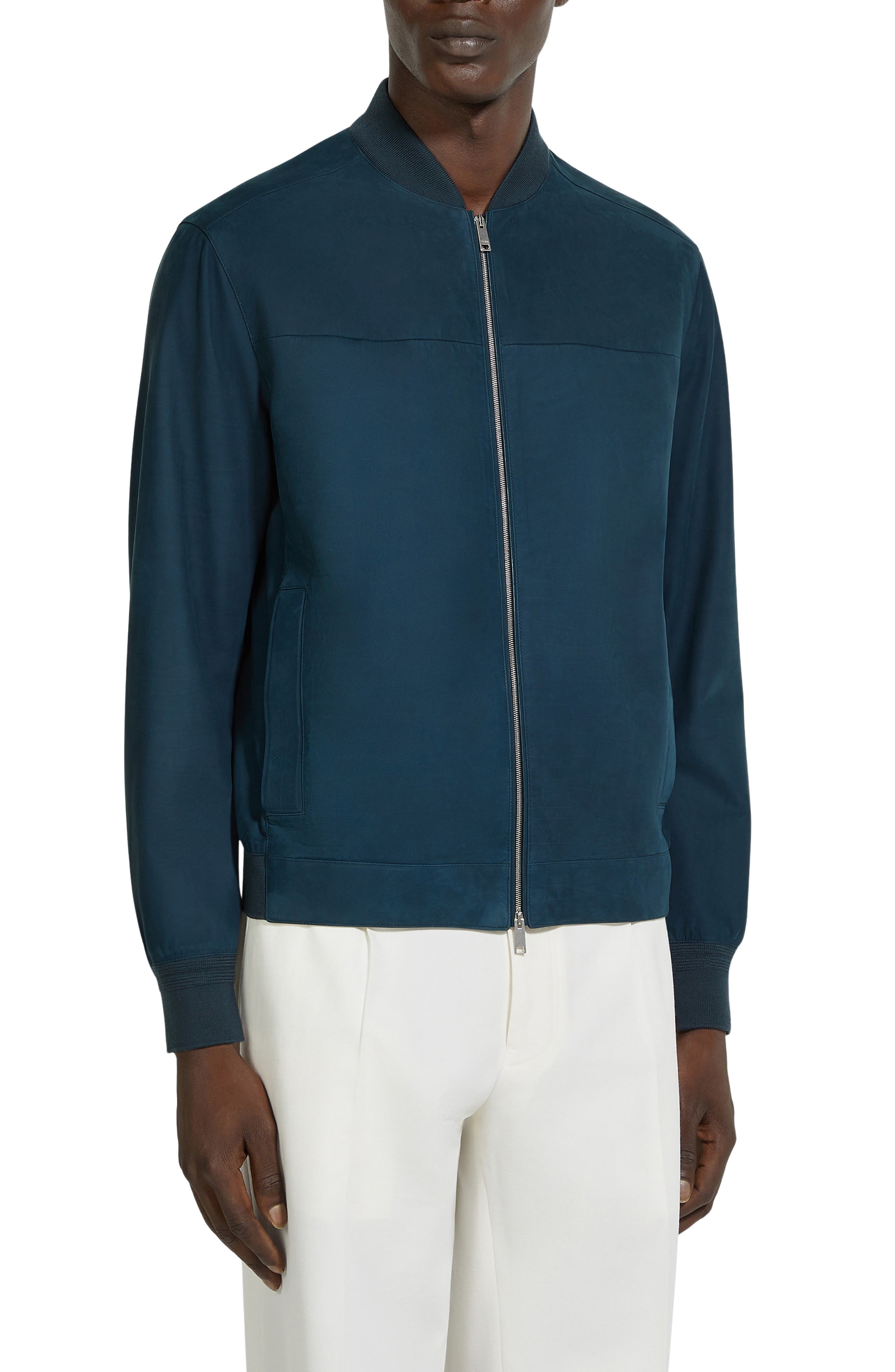 ZEGNA Suede Bomber Jacket in Dk Blu Sld at Nordstrom