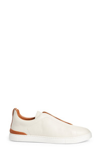 ZEGNA Triple Stitch Deerskin Leather Slip-On Sneaker in White/Folliage at Nordstrom