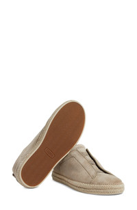 ZEGNA's signature triple crisscross elastic straps offer a flexible, custom fit in this Italian slip-on sneaker crafted from buttery-soft calfskin suede. Perfect for warmer weather, its laid-back design is elevated with an espadrille-style sole. Pull-on style with elastic laces Leather upper and lining/textile and synthetic sole Made in Italy Designer Shoes