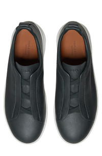 The Secondskin Triple Stitch sneaker features a glove-leather upper for mold-to-your-foot comfort and is mounted on an extralight rubber sole for a sleek look. The brand’s signature crossover elastic straps ensure an easy slip-on fit. Leather upper and lining/rubber sole Made in Italy Designer Shoes