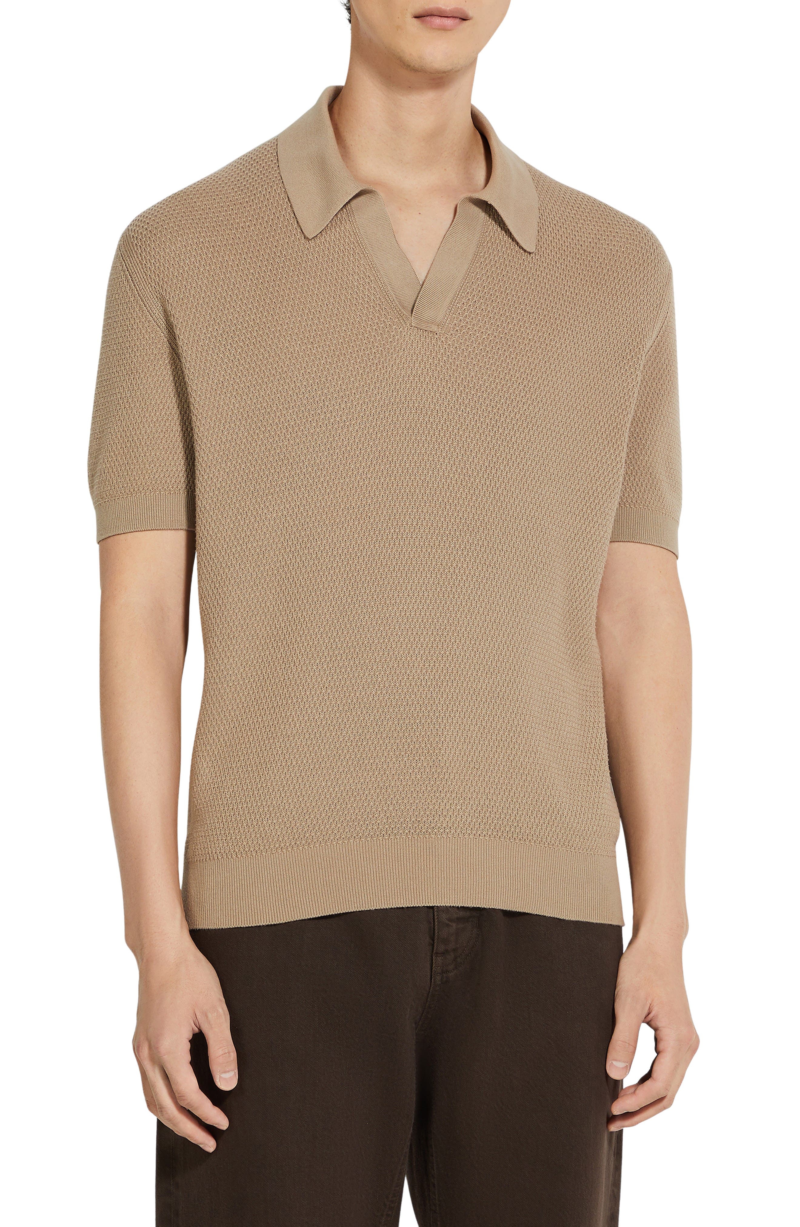 ZEGNA Waffle Stitch Premium Cotton Polo Sweater in Light Beige Solid at Nordstrom