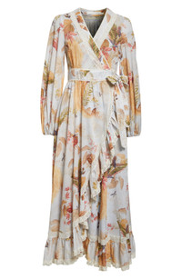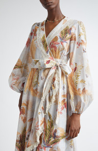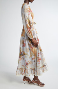 Zimmermann Ascension Frill Lace Trim Floral Long Sleeve Maxi Dress in Light Blue Palm Floral at Nord
