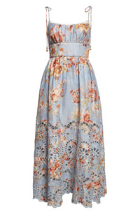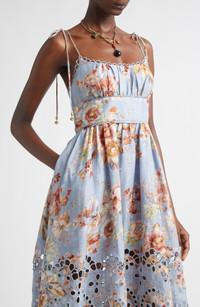 Zimmermann Awaken Picnic Eyelet Embroidered Linen Sundress in Chambray Floral at Nordstrom