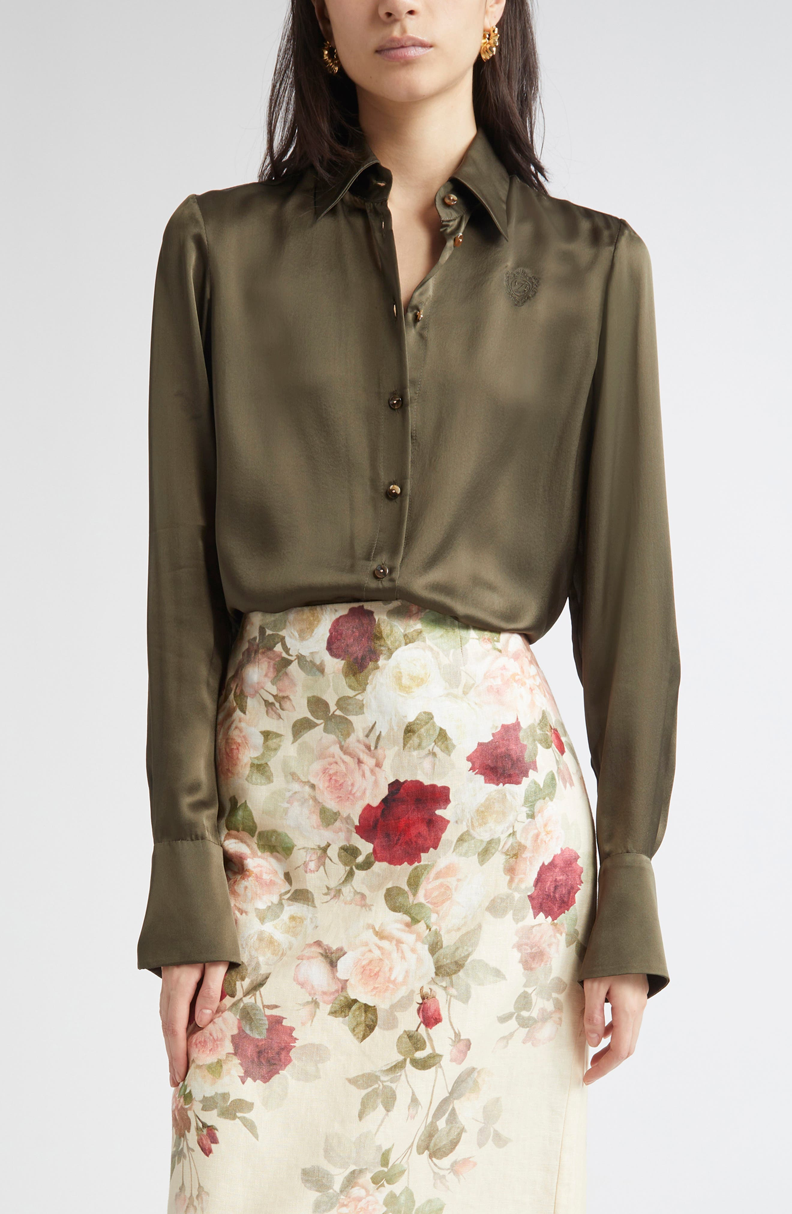 Zimmermann Hypnotic Silk Button-Up Shirt in Olive at Nordstrom