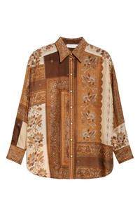 Zimmermann Lucky Oversize Silk Button-Up Shirt in Chocolate Bandana at Nordstrom