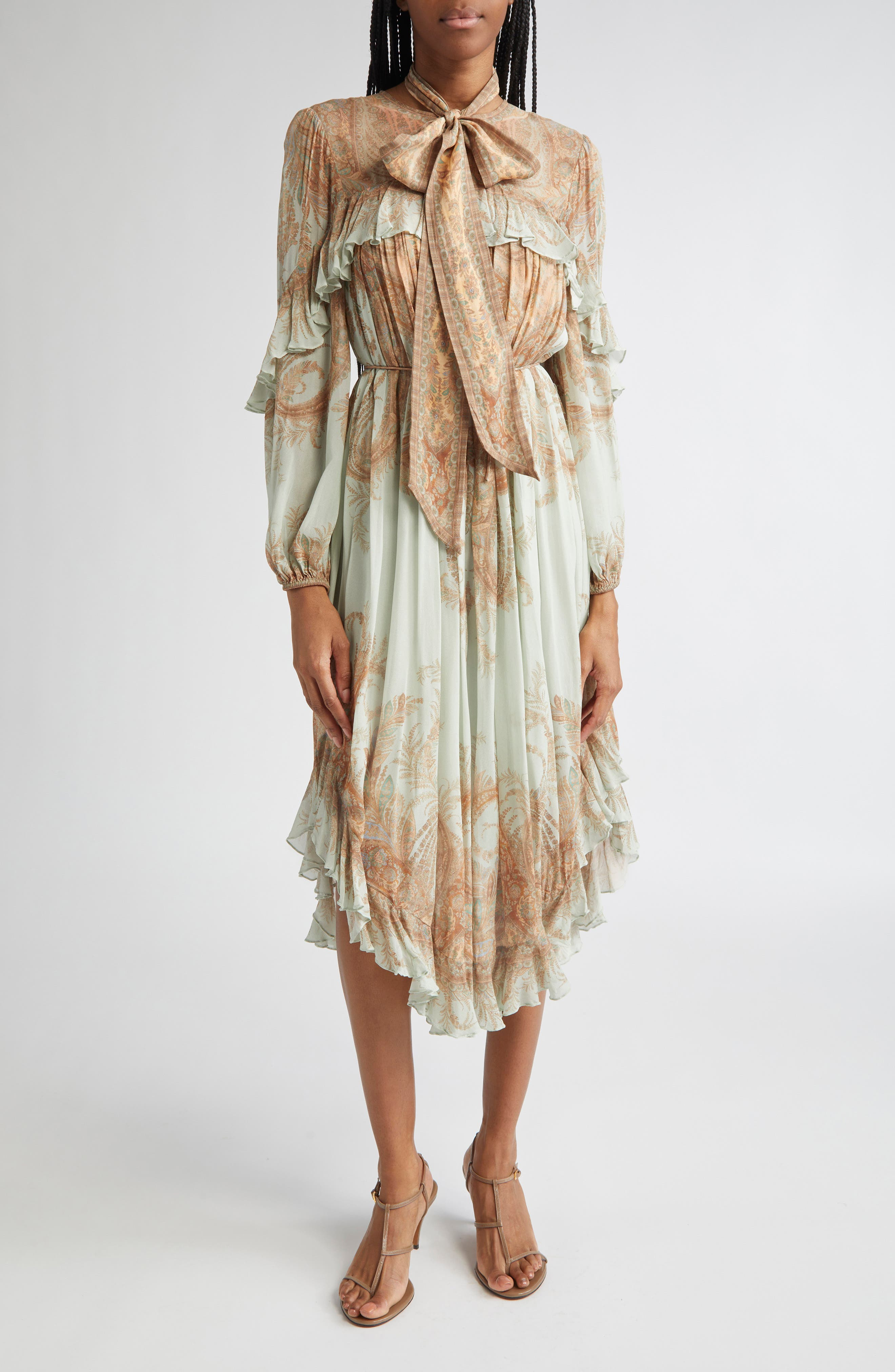 Zimmermann Memento Flutter Paisley Long Sleeve Midi Dress in Mint Paisley at Nordstrom