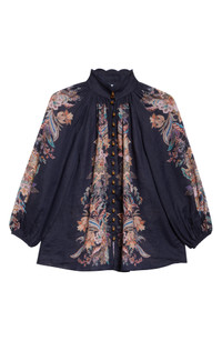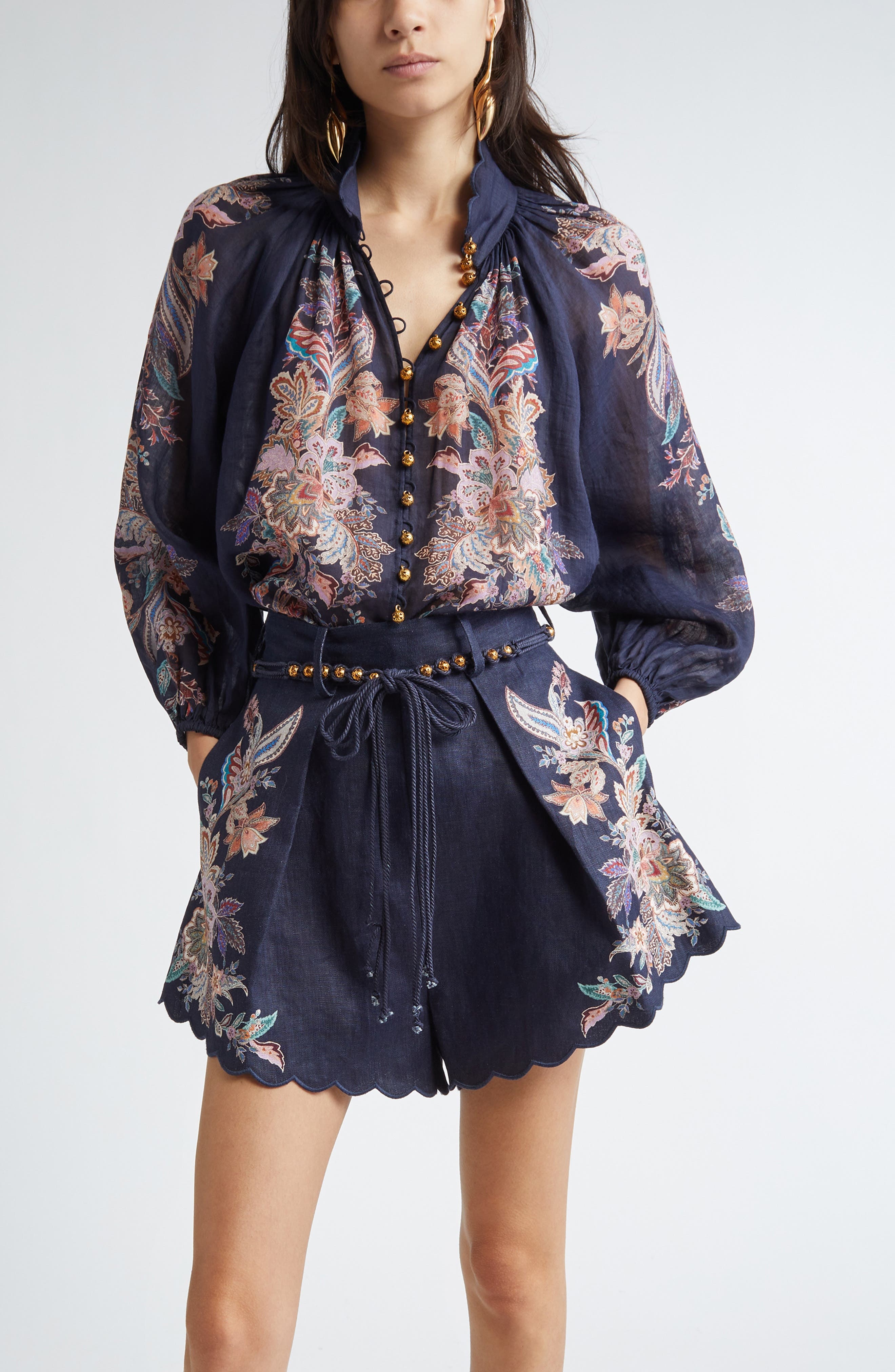 Zimmermann Rhiannon Embroidered Floral Billow Top in Navy Multi Paisley at Nordstrom