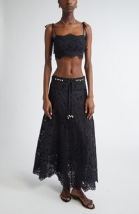 Zimmermann Rhiannon Guipure Lace Trim Cotton Crop Top in Black at Nordstrom