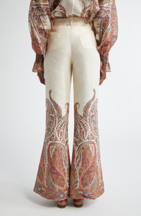 Zimmermann Rhiannon Paisley Print Belted Linen Flare Pants in Cream Paisley at Nordstrom