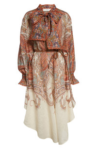 From the Aussie brand's continued celebration of '70s surf culture, this breezy ramie dress channels beachy ease with billowed sleeves and sweeping ties that hang loose down the front. Ornate paisley swirls further boho-eclectic character. Slips on over head Split neck with ties Long sleeves Removable tie belt Slip lining 100% ramie Dry clean Imported Designer Clothing