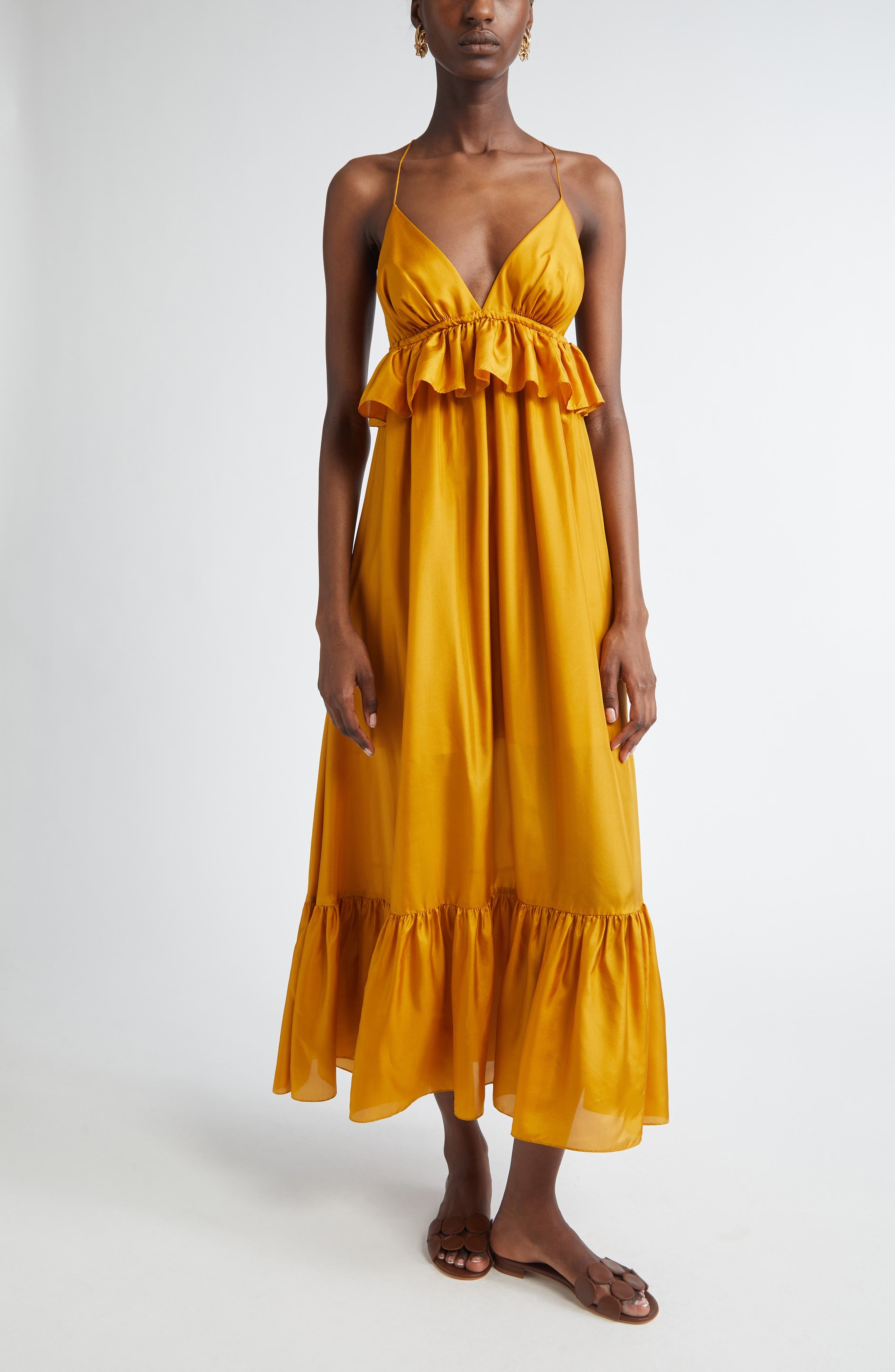Zimmermann Rhiannon Tiered Ruffle Peplum Silk Maxi Dress in Gold at Nordstrom