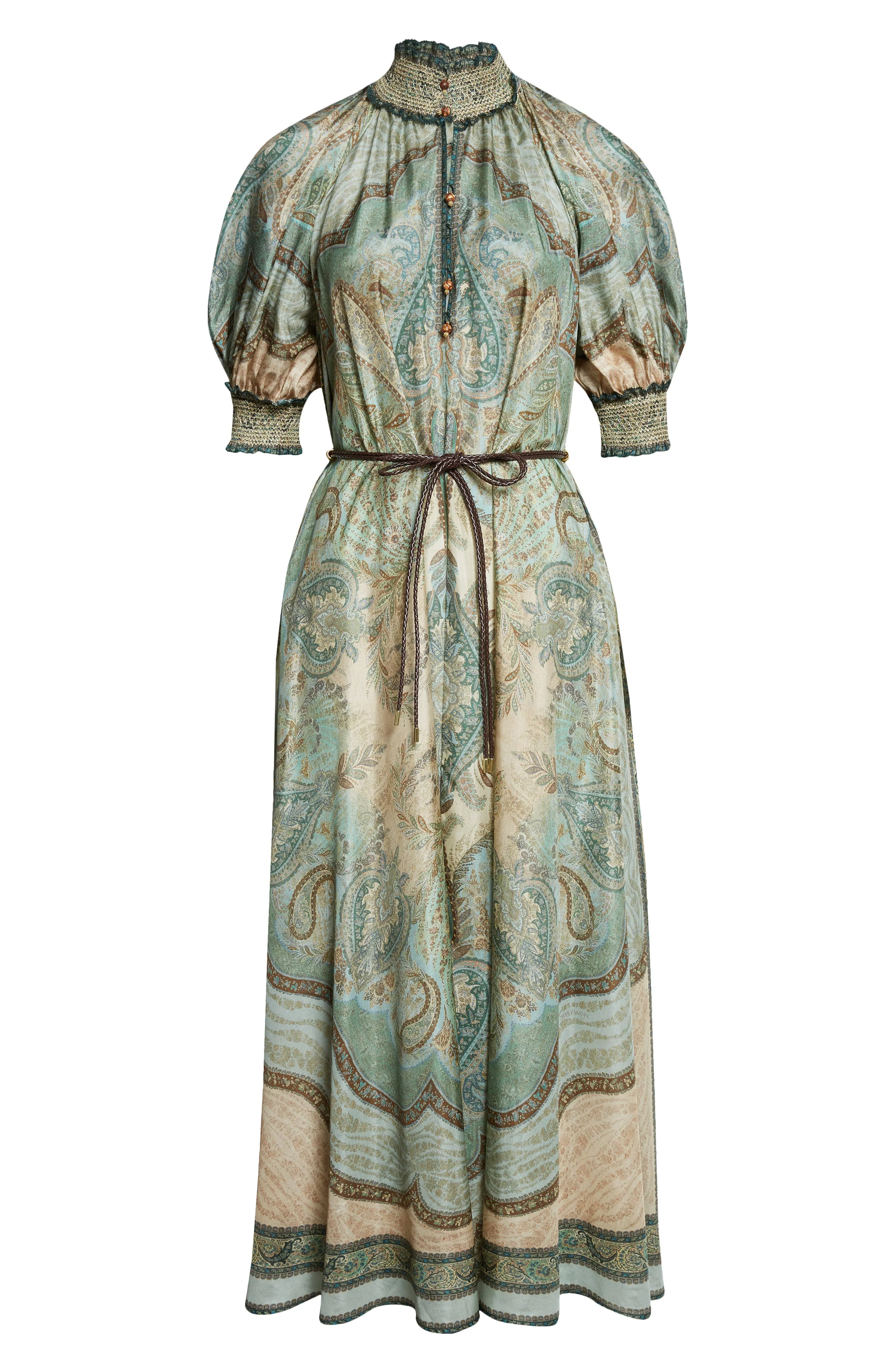 Zimmermann Wanderlust Paisley Billow Sleeve Belted Silk Maxi Dress in Tapestry Teal Multi at Nordstr