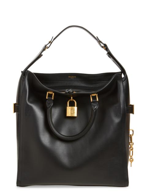 Balmain Large Pulse Waxy Calfskin Tote in 0Pa Black at Nordstrom