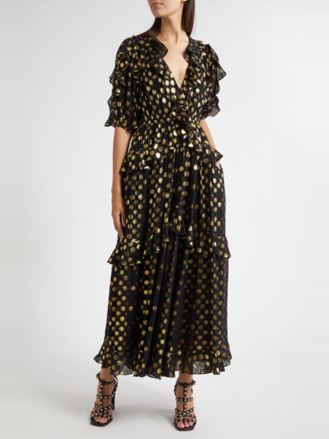 Ulla Johnson Tida Metallic Dot Silk Blend Dress in Obsidian at Nordstrom