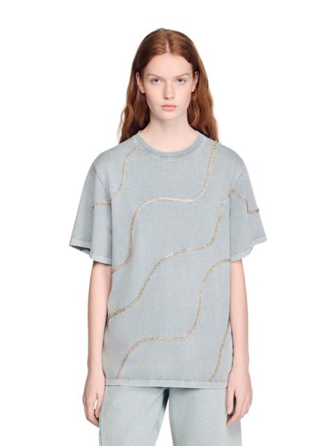 SANDRO Rhinestone T-shirt in Grey at Nordstrom